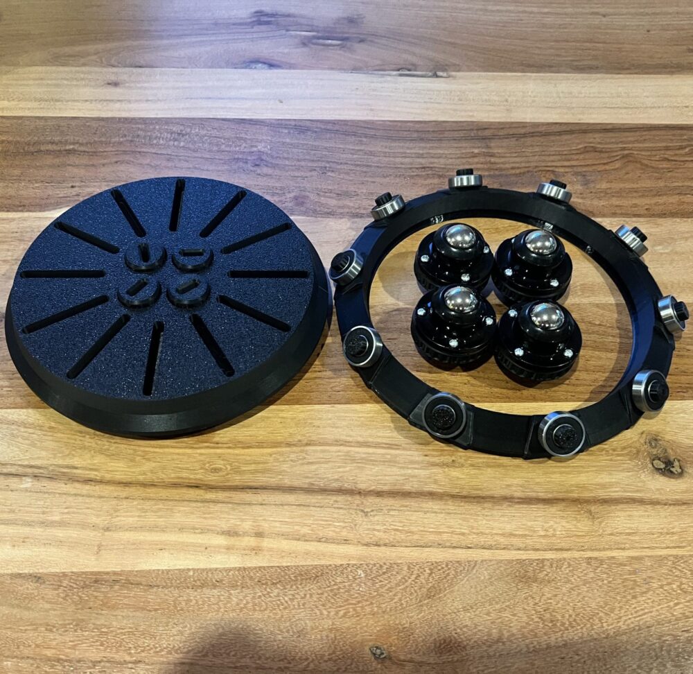 Already have the StageTop Express Gaming Table but want the Tired Timmy? You don’t need to purchase two tables! This kit comes with the components needed to convert your StageTop Express into a rotating gaming table: turn pad, turn base, and as many castor wheels as your size table needs.